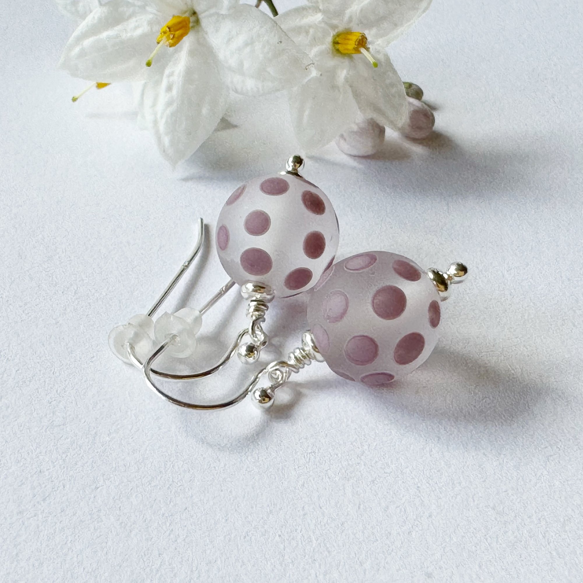 A very nice simple combination of small purple dots over clear glass. Finished with a silky matt surface enhancing the design elements.