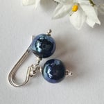 Bead size is 12mm round and overall drop length from top of hooks is 34mm.