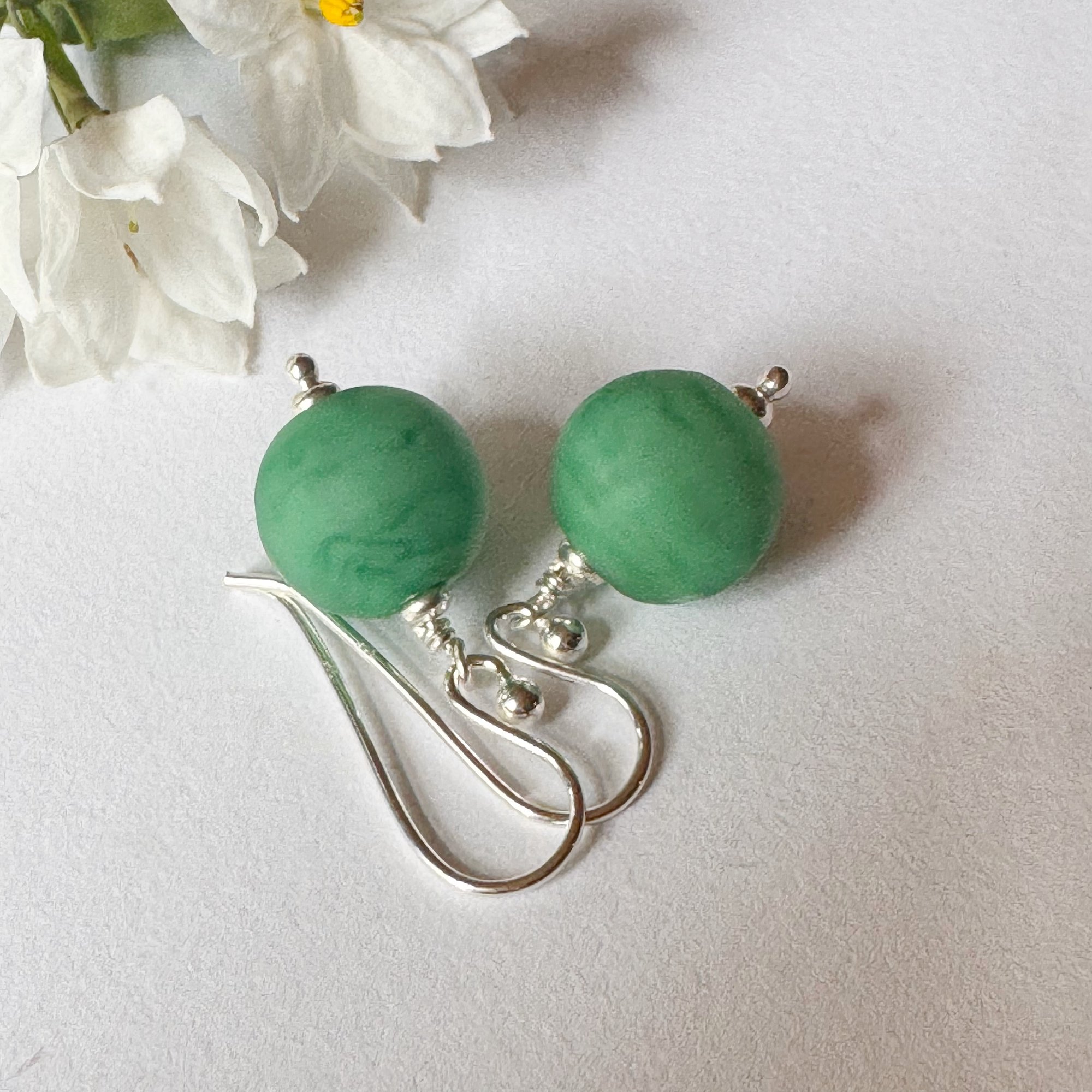 Bead size is 13mm round and overall length from top of hooks is 35mm.