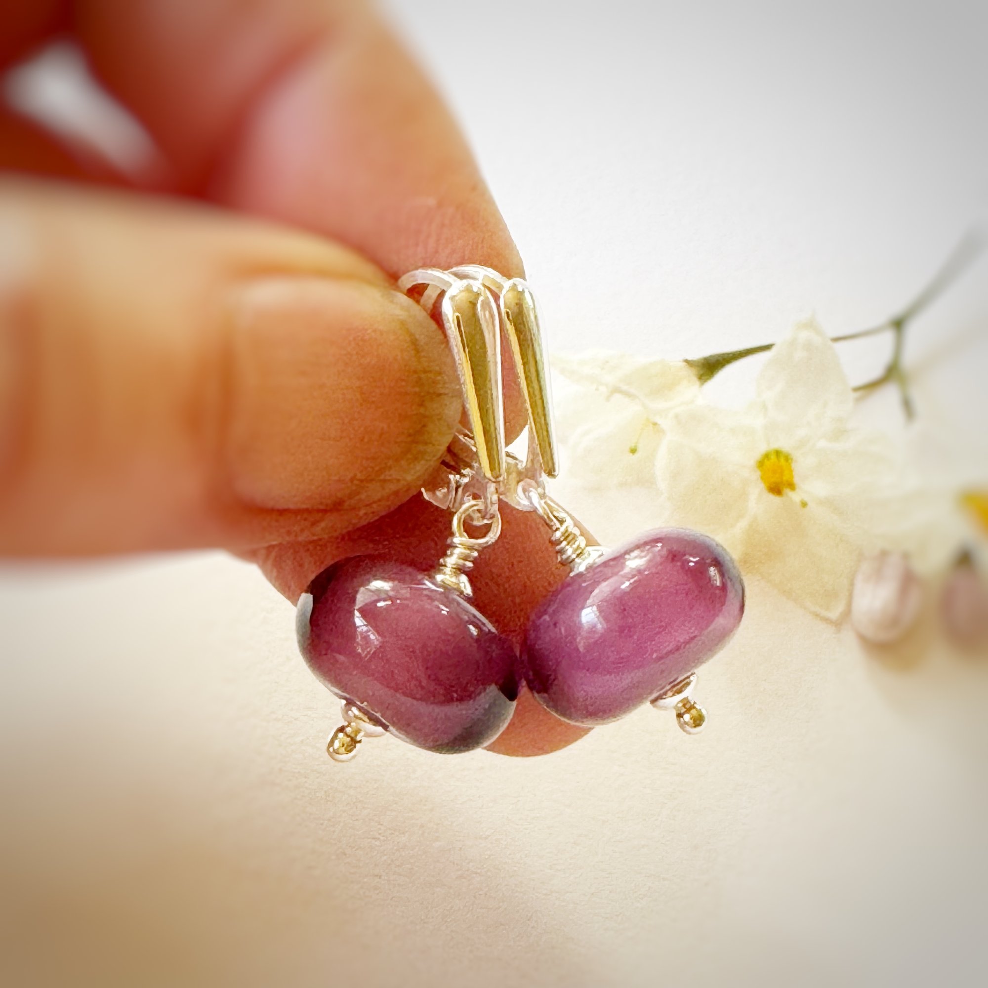 All metal components are Stirling Silver. Leverback fittings are a great way to ensure you never loose an earing.