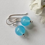 Milky aqua glass in simple rounds measuring 13mm. Overall length from top of hooks is 36mm.