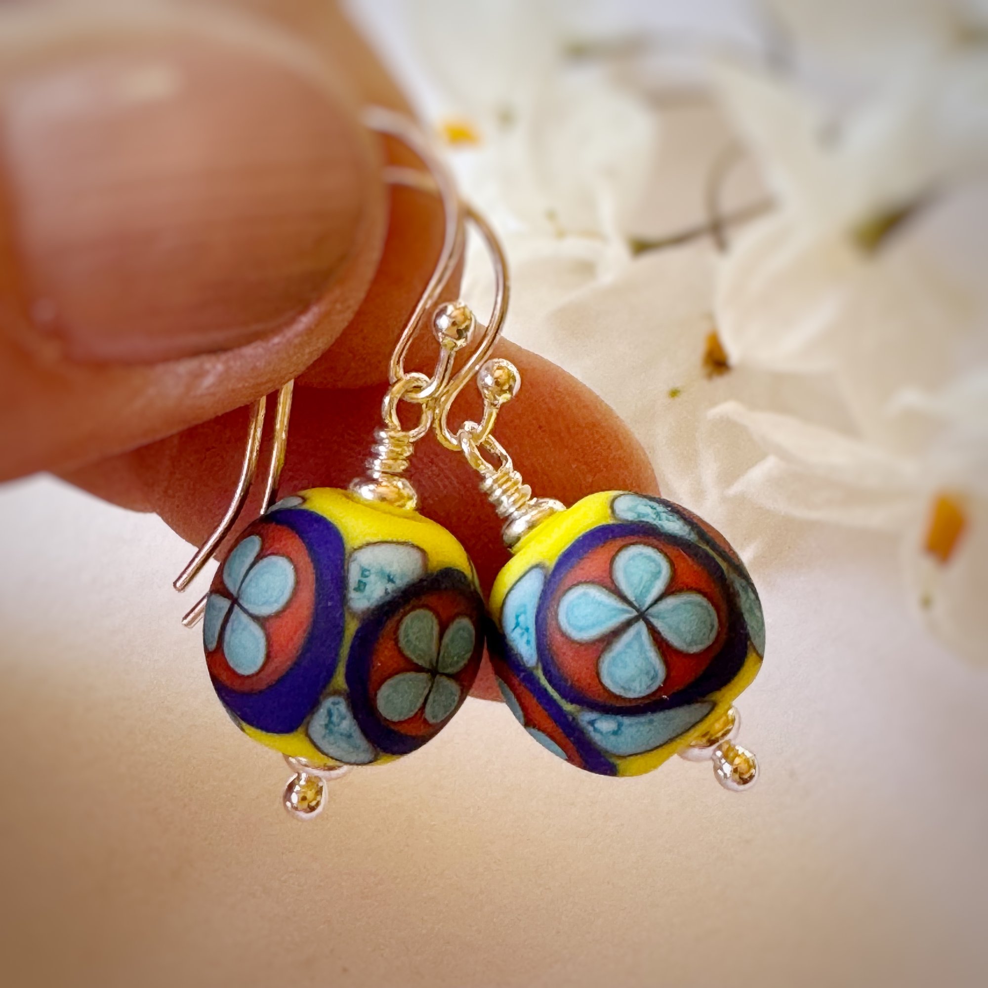 Measuring 12mm round these earrings are 30mm from top of hooks and come supplied with silicone savers,.